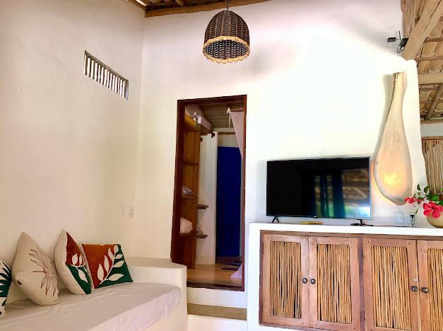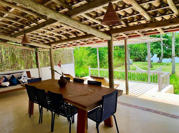 Casa aconchegante pé na areia, na Praia do Espelho, em Trancoso, com 03 suítes sendo duas com cama king size e uma queen. A casa é completa com sala de jantar/estar, totalmente equipada com ar-condicionado, fogão, geladeira, TV, forno eletrônico e gerador. Belíssimo jardim entorno da casa, com todo conforto e segurança.